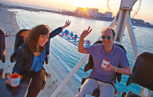 <p>Prefer seeing the bigger picture? Then why not do that 40m up in the air with drink in hand and your feet dangling in the sea breeze. Enjoy a thrilling and completely safe way of exploring Dubai. Take in the new level panoramic views of Dubai Marina, JBR and Bluewater Island with the Eye of Dubai wheel in the background.</p>